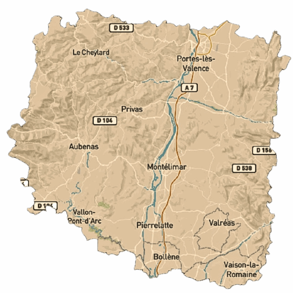 VALENCE 26000 – MONTÉLIMAR 26200 – BOURG-LÈS-VALENCE 26500 – GUILHERAND-GRANGES 07500 – AUBENAS 07200 – PIERRELATTE 26700 – SAINT-PAUL-TROIS-CHÂTEAUX 26130 – LIVRON-SUR-DRÔME 26250 – LORIOL-SUR-DRÔME 26270 – LE TEIL 07400 – PRIVAS 07000 – NYONS 26110 – DONZÈRE 26290 – PONT-SAINT-ESPRIT 30130 – BOLLÈNE 84500 – VAISON-LA-ROMAINE 84110 – LAPALUD 84840 – MONDRAGON 84430 – VALRÉAS 84600 – LA VOULTE-SUR-RHÔNE 07800 – SAINT-PÉRAY 07130 – CREST 26400 – SAINT-MARCEL-LÈS-VALENCE 26320 – SAINT-JUST-D’ARDÈCHE 07700 – VIVIERS 07220 – MALISSARD 26120 – MONTÉLIER 26120 – UCEL 07200 – DIEULEFIT 26220 – SUZE-LA-ROUSSE 26790 – TAIN-L’HERMITAGE 26600 – MONTBOUCHER-SUR-JABRON 26740 – GRIGNAN 26230 – ROCHEMAURE 07400 – RUOMS 07120 – SAINT-SERNIN 07200 – SAINT-ÉTIENNE-DE-FONTBELLON 07200 – LA BÉGUDE-DE-MAZENC 26160 – SAINT-MARTIN-D’ARDÈCHE 07700 – SAINT-MARCEL-D’ARDÈCHE 07700 – SAINT-AGRÈVE 07320 – VERNOUX-EN-VIVARAIS 07240 – LALEVADE-D’ARDÈCHE 07380 – MEYRAS 07380 – VALLON-PONT-D’ARC 07150 – AUBIGNAS 07400 – LARGENTIÈRE 07110 – CHOMÉRAC 07210 – CRUAS 07350 – SAINT-JEAN-LE-CENTENIER 07580 – AOUSTE-SUR-SYE 26400 – ALISSAS 07210 – VESSEAUX 07200 – MONTPEZAT-SOUS-BAUZON 07560 – SAINT-SYLVESTRE 07440 – UPIE 26120 – SAINT-LAGER-BRESSAC 07210 – SAUZET 26740 – MARSANNE 26740 – CHÂTEAUNEUF-DU-RHÔNE 26780 – ALLEX 26400 – TULETTE 26790 – BEAUMONT-LÈS-VALENCE 26760 – SAINT-GEORGES-LES-BAINS 07800
